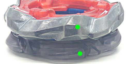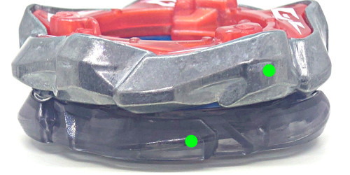 24という数字で頭がいっぱいになってしまいますが、これは何を意味するかというと、先の4モードそれぞれでメインブレードに対するアシストブレードの向きが6パターン存在するということになります。 ダブルアッパーを例にして以下の画像で見てみましょう。便宜上、アシストの外周を固定してメインとアシストのコアを回しながら見てます。パッケージのパーツ画像の向きを正の0時としてます。