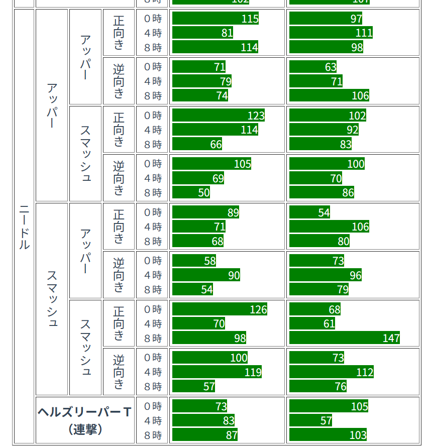 スマッシュ | アッパー | 正向き | 0時 4時 8時 |